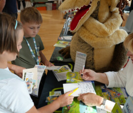 Diese großartige mediale Unterstützung und die herausragende Zusammenarbeit mit den Mitarbeitenden der Stadtbibliothek Nordhausen spornte uns zu weietren Ideen an. So initierten wir den ersten BuchKidsHarz-Sommerfereinschreibwettbewerb und veranstalteten eine erste Stempel-Rallye, damit wirklicher jeder Stadt der Ausstellenden besucht wird. Zudem bekam unser Masskotchen, der Luchs (das Harzer Wappentier) einen Namen.